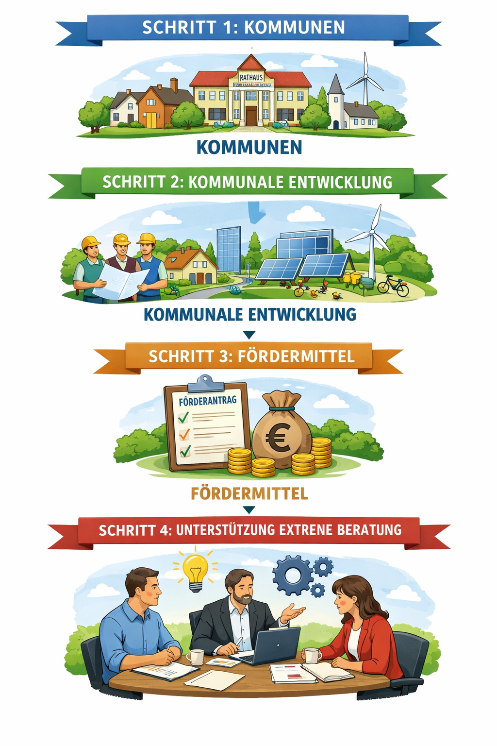Viele Kommunen setzen inzwischen auf spezialisierte Unterstützung — nicht, weil die Verwaltung unfähig wäre, sondern weil Fördermanagement ein eigenes Fachgebiet geworden ist.